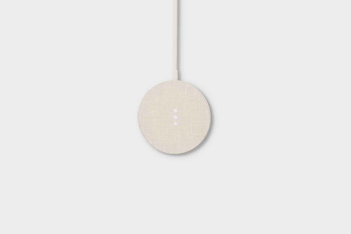 Soften things up with a wireless charger made of premium, designer-quality linen from Belgium.