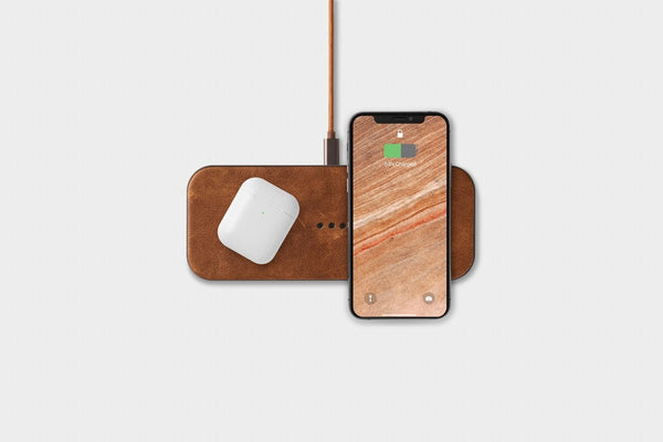 Live luxuriously with a wireless charger made of durable, designer-quality leather from Italy.