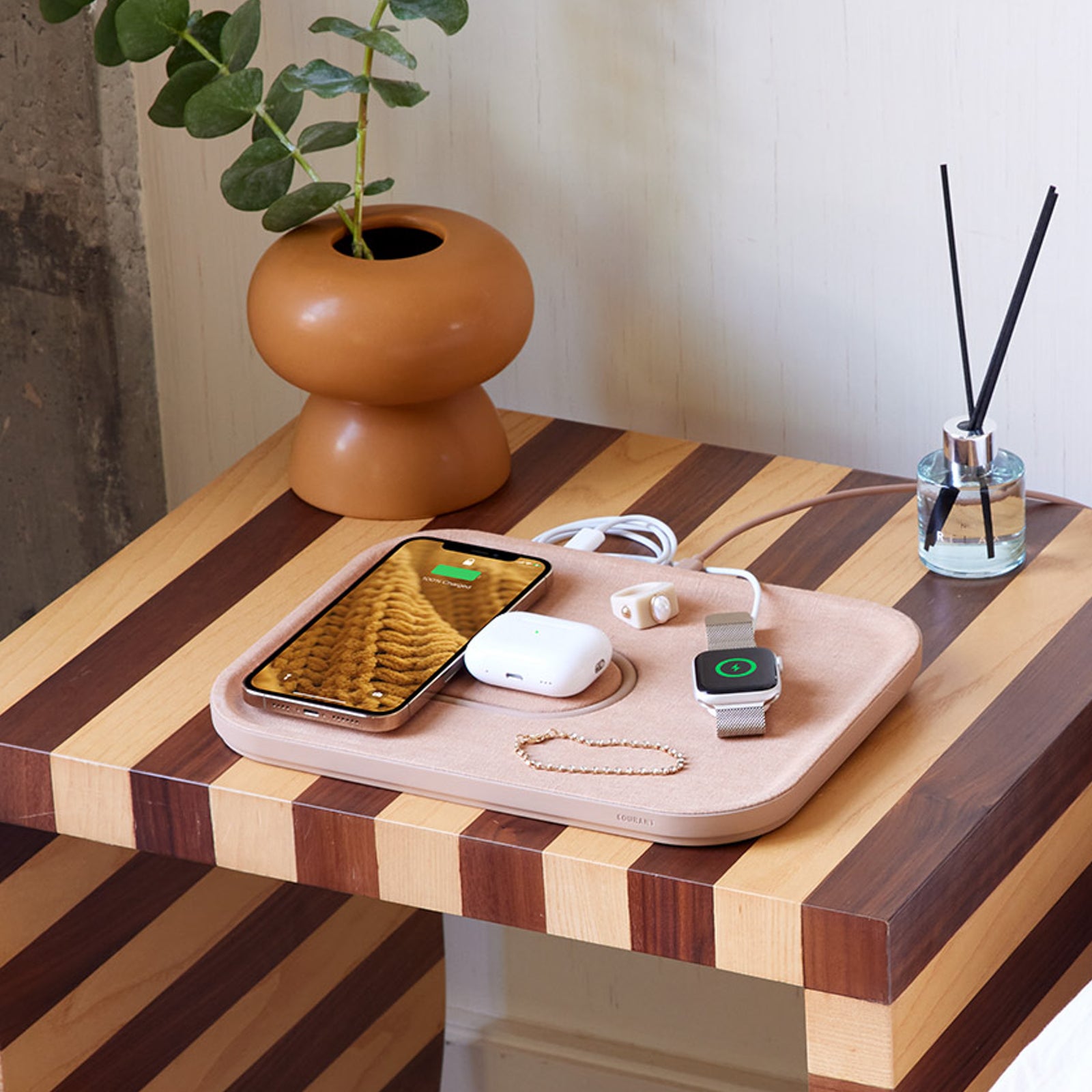 The MAG:3 features a sleek 2-in-1 charging zone with both “MagSafe” and “Qi” compatibility to power your iPhone and AirPods side by side. The recrafted valet tray has increased tray space with an improved modern shape to display your everyday essentials - plus, an extra USB-C port on the back, perfect for a 3rd device or Apple Watch.